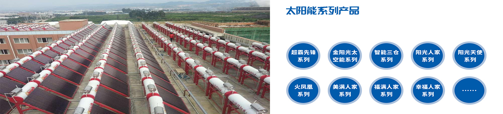 昆明安居樂業(yè)太陽能設(shè)備有限公司是集科研、生產(chǎn)、銷售、安裝、維修及售后服務(wù)為一體的專業(yè)化太陽能熱水器生產(chǎn)廠家制造企業(yè)。公司成立于2006年3月(公司前身為成立于1998年5月的“昆明誠信陽光太陽能廠”),生產(chǎn)研發(fā)基地占地面積近29畝,座落于依山傍水的昆明市大板橋工業(yè)園旁的李其村委會上李其村。公司自創(chuàng)建之日起,一直堅持“誠信經(jīng)營、創(chuàng)新發(fā)展、品質(zhì)為先、服務(wù)至上”的經(jīng)營管理理念,一步一個腳印,一年一個臺階,穩(wěn)步持續(xù)地發(fā)展;公司的每位員工始終踐行著“科技創(chuàng)業(yè),品質(zhì)興業(yè),雙贏建業(yè)”的戰(zhàn)略文化內(nèi)涵,高起點、高標(biāo)準(zhǔn)、嚴(yán)要求、重細(xì)節(jié)致力于改進提高和完善產(chǎn)品質(zhì)量及安裝與售后服務(wù)水平。公司在秉承傳統(tǒng)太陽能熱水器行業(yè)成熟科技成果的基礎(chǔ)上,同云南師范大學(xué)太陽能研究所、國家新能源工程技術(shù)研究中心等單位建立了良好的合作關(guān)系,并努力發(fā)揮自身的技術(shù)優(yōu)勢,依靠先進的生產(chǎn)設(shè)備、以及不斷優(yōu)化的生產(chǎn)工藝和完善的檢測設(shè)施,連續(xù)開發(fā)生產(chǎn)出以“榮益誠信陽光”為主打品牌,以真空集熱管為集熱核心組件的六大系列、全規(guī)格型號的十六個太陽能集熱器單品,在適應(yīng)不同地域、不同消費層次、不同家庭、不同使用場所的同時,滿足了廣大客戶的熱水需求,真正為廣大群眾帶來溫暖的享受。特別值得一提的是,“榮益誠信陽光”太陽能在太陽能熱水工程領(lǐng)域中,有著自己獨特的設(shè)計理念,可承接不同區(qū)域、不同熱負(fù)荷、不同使用環(huán)境的熱水工程,實現(xiàn)與建筑一體化完美結(jié)合;而且針對各企事業(yè)單位大、中、小型太陽能熱水系統(tǒng)工程,可進行免費現(xiàn)場設(shè)計和成本核算,力爭為客戶提供最經(jīng)濟、最合理、最規(guī)范的熱水工程解決方案。